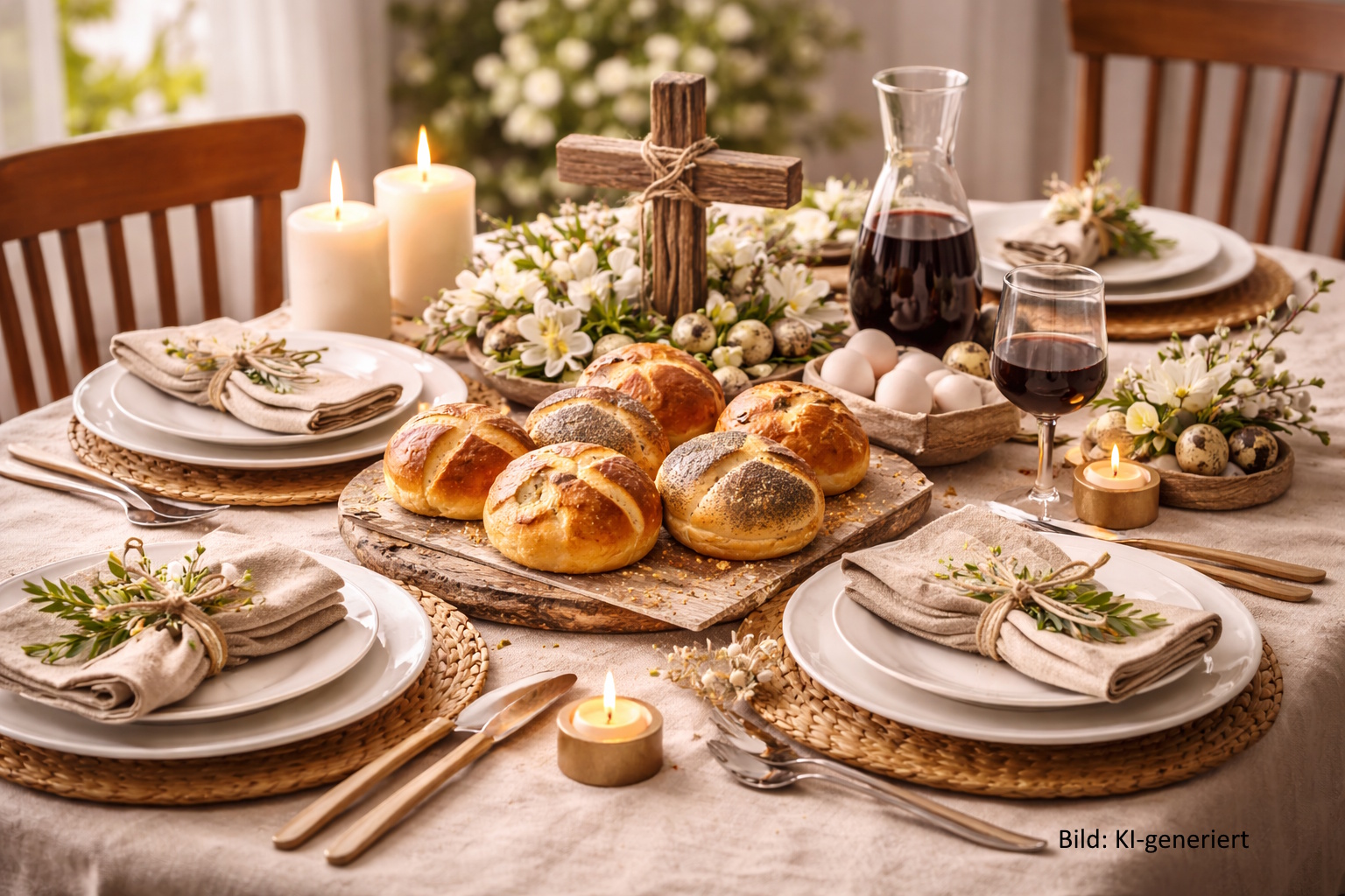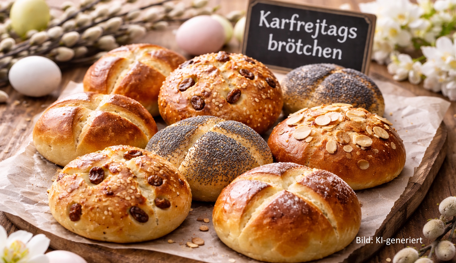 Übrigens: In vielen Regionen Deutschlands und anderen Teilen Europas ist es Tradition, zu Karfreitag ein besonderes Gebäck zu backen. Die Karfreitagsbrötchen sind eine solche Tradition, die ursprünglich in Norddeutschland verbreitet war. Sie symbolisieren nicht nur den christlichen Kontext des Karfreitags, sondern auch die Kultur des gemeinsamen Genusses und des Zusammenhalts an diesem Tag. In vielen Haushalten wird ein süßes Hefegebäck mit Rosinen oder anderen Trockenfrüchten gebacken. Es ist ein Gebäck, das in der christlichen Tradition als Symbol für den Verzicht auf Fleisch und für die Feier des Leidens und der Auferstehung Jesu Christi verstanden wird.